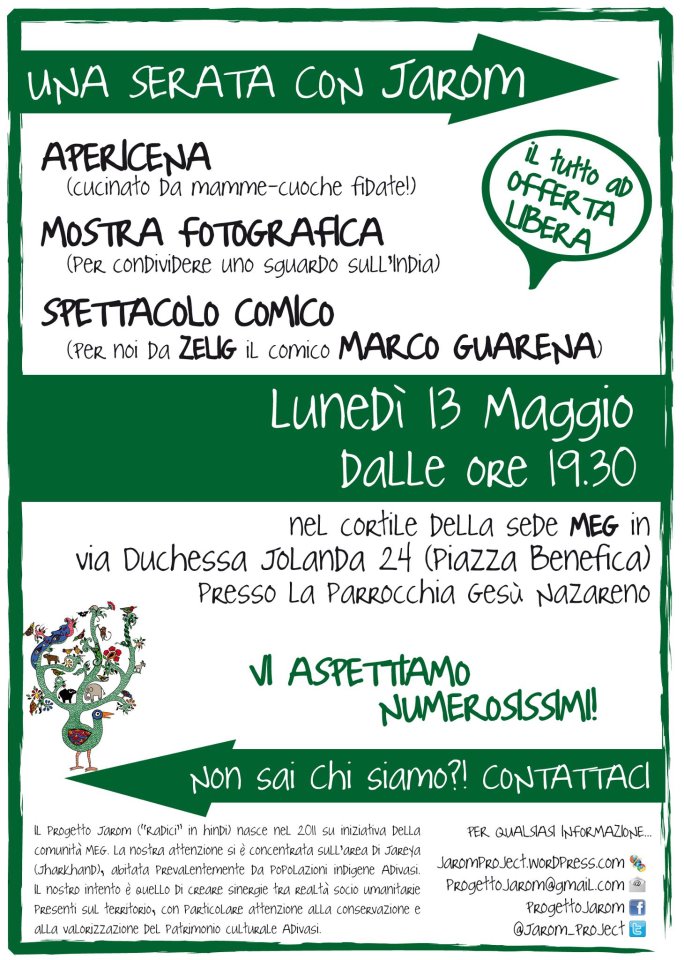 Ingresso a offerta libera, l’intero ricavato servirà a finanziare il progetto Jarom.